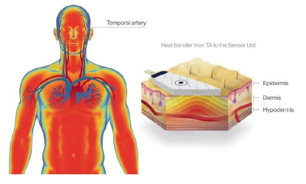 In base a parametri noti, è possibile utilizzare le caratteristiche del flusso sanguigno dell’arteria temporale per derivare la temperatura centrale.